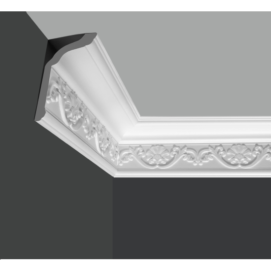Deckenleiste Styropor DP43 ist aus Polystyrol (Styropor) gefertigt.