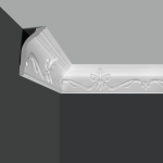 Deckenleiste Styropor DP44 besteht aus dem leichten Material Polystyrol (Styropor). Die Deckenleiste lässt sich einfach mit Kleber montieren und kann mit Farbe auf Wasserbasis gestrichen werden.