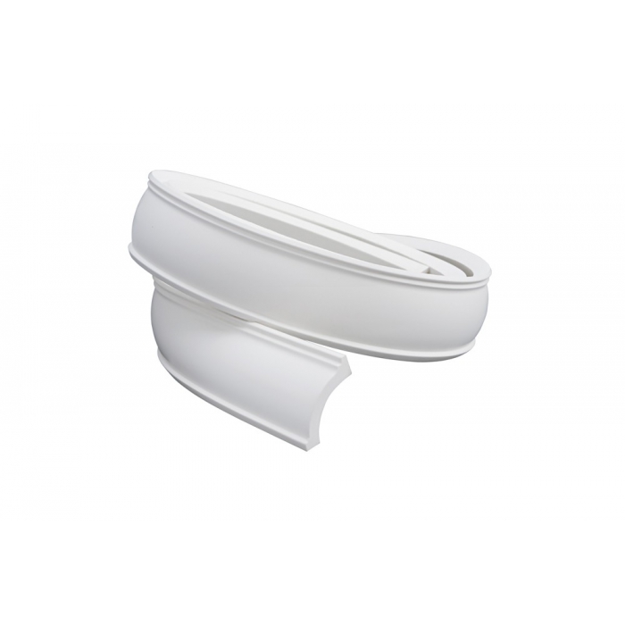 Deckenleiste Z225 Flex kann zusammen mit Deckenleiste Z225. Die flexible Leiste kann gebogen und gefaltet werden und eignet sich daher zur Verwendung als Deckenleiste an abgerundeten Wänden, und Stellen, an denen herkömmliche Deckenleisten nicht verwendet werden können. Die flexiblen Leisten bestehen aus Polyurethan (PU), einem stoß- und wasserfesten Material.