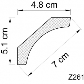 Deckenleiste Z261 Flex kann zusammen mit Deckenleiste Z261. Die flexible Leiste kann gebogen und gefaltet werden und eignet sich daher zur Verwendung als Deckenleiste an abgerundeten Wänden, und Stellen, an denen herkömmliche Deckenleisten nicht verwendet werden können. Die flexiblen Leisten bestehen aus Polyurethan (PU), einem stoß- und wasserfesten Material.