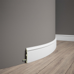 Sockelleiste MD358 Flex kann zusammen mit Sockelleiste MD358. Die flexible Leiste kann gebogen und gefaltet werden und eignet sich daher zur Verwendung als Bodenleiste an abgerundeten Wänden, und Stellen, an denen herkömmliche Bodenleisten nicht verwendet werden können.