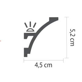 Deckenleiste HD904 für indirektes Licht hat eine große Wirkung und ist dekorativ; sie verstärkt das Raumgefühl. Die Deckenleisten sind vielseitig einsetzbar, werden aber meist etwas unterhalb des Winkels zwischen Decke und Wand platziert.