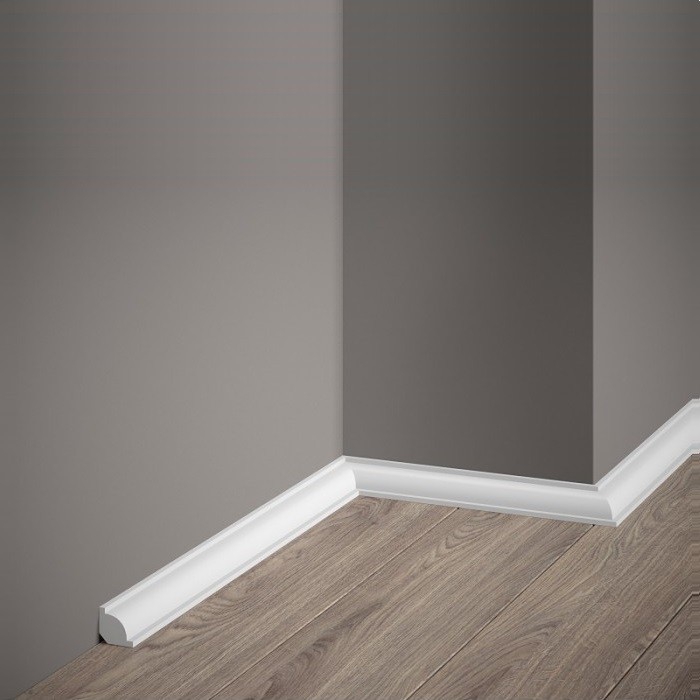 Sockelleiste MD001 besteht aus polyforce, einem schlag- und stoßfestem sowie wasserbeständigen Material, das nicht so anfällig wie Holz ist und nicht arbeitet. Die Fußleiste kann einfach mit Klebstoff und/oder Nägeln montiert werden und hält Lackierungen aller Art stand.