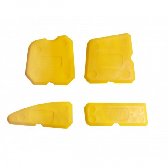 Fugenset mit vier verschiedenen Silikonschabern. Verwenden Sie die Schaber, um überschüssige Fugenmasse zu entfernen und auf einfache Weise perfekte Fugenoberflächen zu erhalten.
