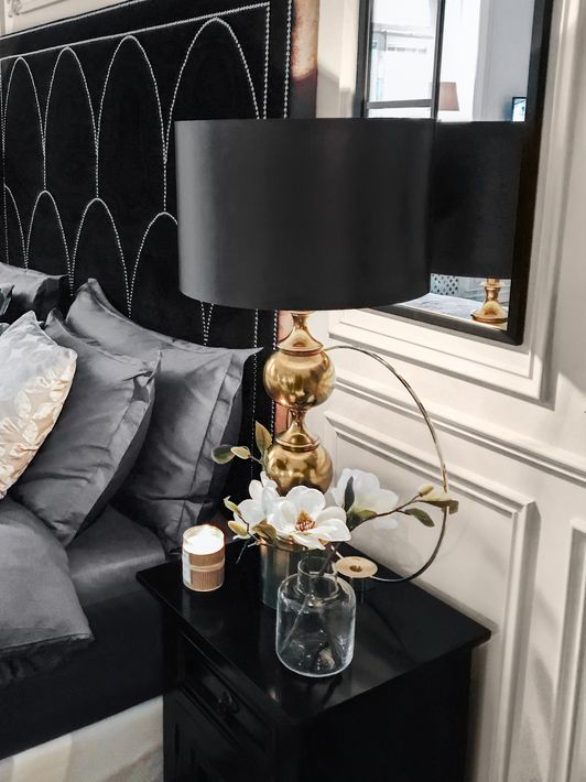 4. Stylish and preferably high, about 50-60 centimeters, bedside table lamps are a must. Dim lights so that they can be lit without spoiling the cozy lighting. Preferably a vase with cut flowers on the side. Also decorate in the window with lamps and decorate it with some books and details that you do on a table.