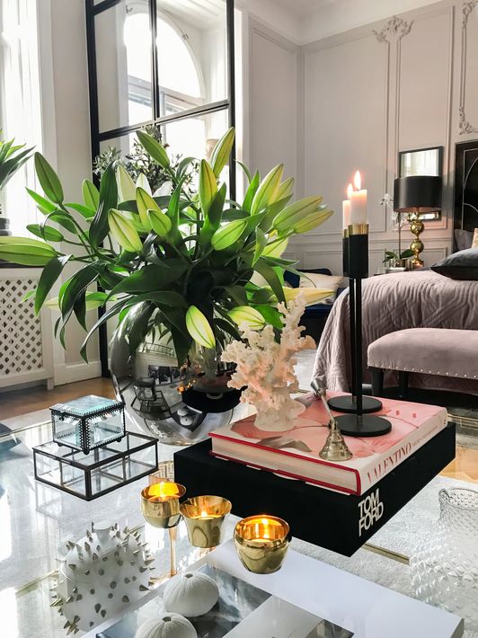 The glamour of a Hotel, I guess; a slight controlled "extra of everything". When I get home, I love the place to be nicer than in a hotel. I want to enjoy and feel good at home, it's incredibly important to me. Then I like metals like gold and silver, preferably mixed with beautiful woods, glass and large carpets. Extremely large mirrors are a requirement. I often do little still lifes at home. My stuff are carefully placed, which is a must in order to make sure that the place doesn't look messy!