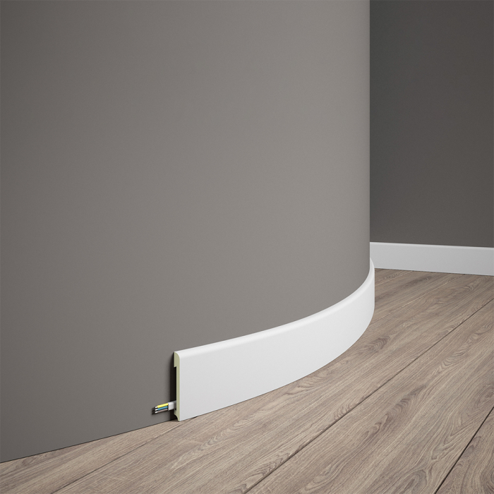 Baseboard MD234 Flex is a flexible moulding that can be used together with Baseboard MD234. The flex baseboard is bendable and foldable and therefore suitable to use as a skirting board/baseboard against rounded walls or where a regular baseboard cannot be used.