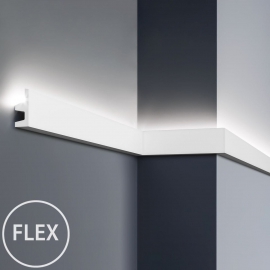 Cornice indirect light KF501 Flex is a flexible moulding that can be used together with Cornice indirect light KF501. The flex moulding is bendable and foldable and therefore suitable to use as a cornice against rounded walls or where ordinary cornice cannot be used. The flex moulding is made of polyurethane (PU), which is a shock- and water-resistant material.