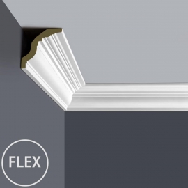 The flex material is easy to process even with ordinary hand tools, and it can be painted with all types of paint. The material withstands moisture and most solvents which makes its cleaning easy and safe. You will find customed glue and joint for mounting the mouldings under Accessories.