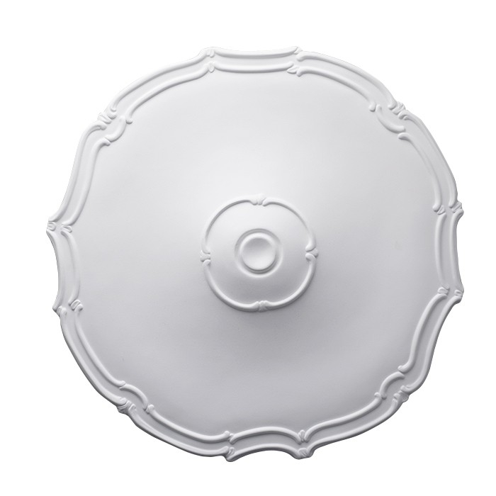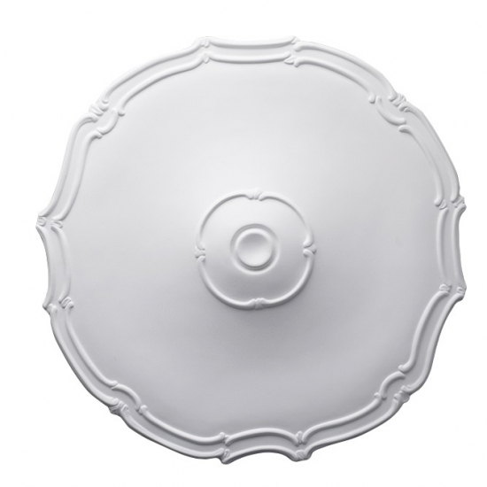 Ceiling rose R113 is made of polyurethane. All of our products are treated with a white primer and are ready to be painted. We recommend that you use water-based paints. The product is easy to mount with glue, and you can simply drill a hole and cut out space for a lamp hook and cover in order to hide the cables on the back side of the product.