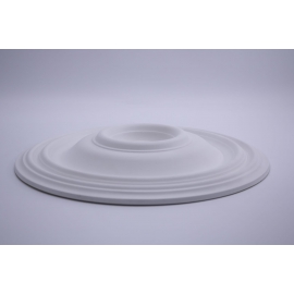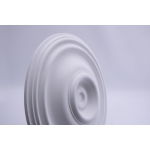 Ceiling rose R230 is made of polyurethane. All of our products are treated with a white primer and are ready to be painted. We recommend that you use water-based paints. The product is easy to mount with glue, and you can simply drill a hole and cut out space for a lamp hook and cover in order to hide the cables on the back side of the product.