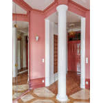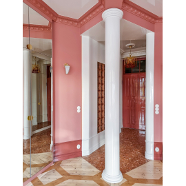 Ceiling rose R300 is made of styrofoam/polystyrene and easily mounted with glue. The material is easy to work with— a do-it-yourself installation! You can simply drill a hole and cut out space for a lamp hook and cover in order to hide the cables on the back side of the product. Use water-based paint.