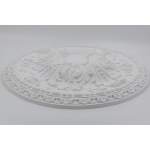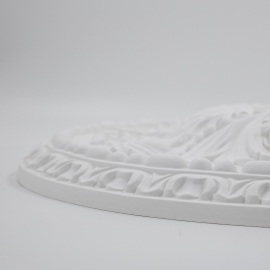 Ceiling rose Z25 is made of polyurethane. All of our products are treated with a white primer and are ready to be painted. We recommend that you use water-based paints. The product is easy to mount with glue, and you can simply drill a hole and cut out space for a lamp hook and cover in order to hide the cables on the back side of the product.