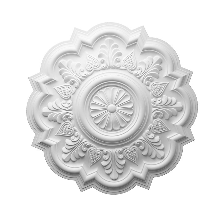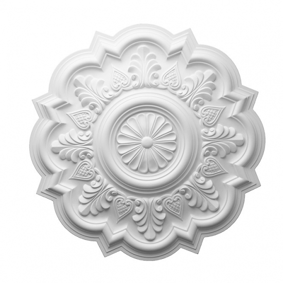 Ceiling rose Z61 is made of polyurethane. All of our products are treated with a white primer and are ready to be painted. We recommend that you use water-based paints. The product is easy to mount with glue, and you can simply drill a hole and cut out space for a lamp hook and cover in order to hide the cables on the back side of the product.