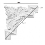 Corner mouldings are made of polyurethane, a shock- and water-resistant material with a mirror-smooth paintable surface that allows even the finest details to appear clearly. The material is sandable, and easy to process with ordinary hand tools when installing. Polyurethane can also be used outdoors, and when cleaning, the material withstands moisture and most solvents.