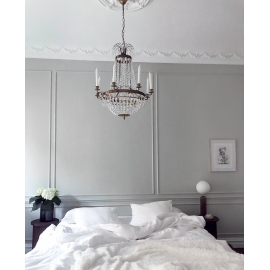 The installation of cornices is quite simple. You can take the measurements and do the cutting by yourself using standard hand tools for sawing, grinding, and processing the setting up. If you happen to use superfluous glue, this can easily be dealt with by an immediate wiping off with water or mild soap solution. When the cornices are set up and you have clogged the gaps with latex joints, you may then paint over the cornice to make it blend in with the ceiling and the wall. Larger cornices are easier to mount with the help of a dyckert nail or screw.