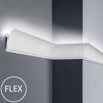 Cornice indirect light KF704 Flex is a flexible moulding that can be used together with Cornice indirect light KF704. The flex moulding is bendable and foldable and therefore suitable to use as a cornice against rounded walls or where ordinary cornice cannot be used. The flex moulding is made of polyurethane (PU), which is a shock- and water-resistant material.
