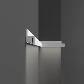 Cornice for indirect light is used to illuminate the ceiling. The back side of the cornice has a cavity with space for light sources. LED light sources are usually the best option as they are both easy to install and energy efficient. Indirect light is effective, decorative, and enhances the feeling of space. The scope of application is great; however, cornices for indirect light are usually placed a bit below the angle between ceiling and wall.