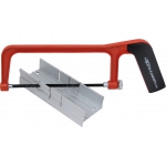 Miter box for straight and angular cutting of decorative mouldings such as wall strips and smaller cornices.