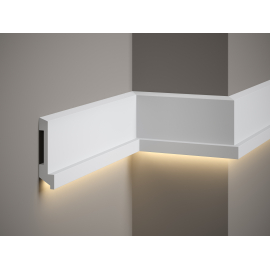 Con su imprimación blanca, viene preparado para cubrirlo con pintura al agua. A diferencia de los marcos para puertas y zócalos de tablero MDF, estos elementos resisten la humedad sin hincharse, por lo que son perfectos para cocinas, zonas húmedas y espacios de spa.