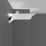 Les corniches pour éclairage indirect sont utilisés pour éclairer le plafond et les murs. Une cavité est aménagée à l'arrière du moulure, avec un espace pour les sources de lumière. Les sources lumineuses LED sont recommandées car elles sont à la fois faciles à installer et peu gourmandes en énergie. La lumière indirecte est pratique et décorative et renforce le sentiment d'espace. Les corniches de plafond peuvent être utilisés de multiples façons, toutefois ils sont généralement placés un peu en dessous de l'angle entre le plafond et le mur.