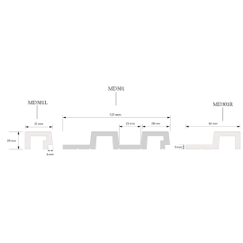 L0301L est une pièce utilisée pour donner une belle finition à la gauche de L0301T. Tout comme la lamelle murale correspondante, ce produit peut être peint dans n'importe quelle couleur avec une peinture à base d'eau