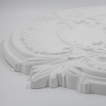 La Rosace de plafond R120 est fabriquée en polyuréthane. Le produit est facile à fixer avec de la colle, et il est facile de découper un espace pour un crochet de lampe, un couvercle et de cacher les câbles à l'arrière du produit.