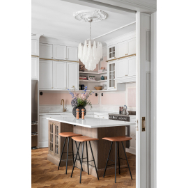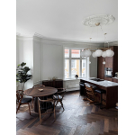 L’ensemble de plafond est utilisée au centre du plafond comme décoration. Si un support de lampe est installé, il y a un espace dans la rosace de plafond pour cacher les câbles électriques. Également utile pour les montages muraux tels que les appliques.