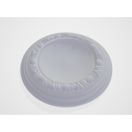 Ceiling rose Z18 is made of polyurethane. All of our products are treated with a white primer and are ready to be painted. We recommend that you use water-based paints. The ceiling rose is easily mounted with glue. The material is easy to work with— a do-it-yourself installation! You can simply drill a hole and cut out space for a lamp hook and cover in order to hide the cables on the back side without professional help.