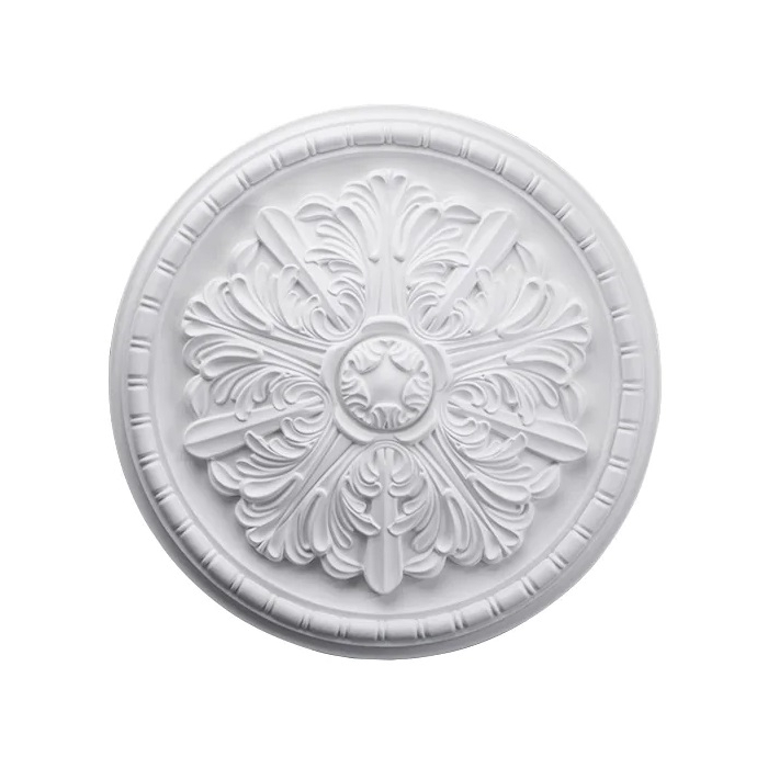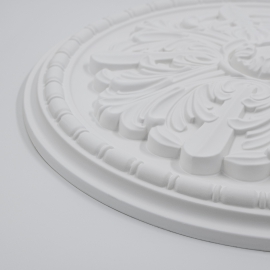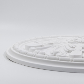 Ceiling rose Z64 is made of polyurethane. All of our products are treated with a white primer and are ready to be painted. We recommend that you use water-based paints. The product is easy to mount with glue, and you can simply drill a hole and cut out space for a lamp hook and cover in order to hide the cables on the back side of the product.