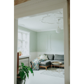 The assembly of mouldings and corners is quite simple, but there are some important things to keep in mind! Use standard hand tools for sawing, grinding and machining before assembly. When mounted with glue, the superfluous glue should be immediately wiped off with water or mild soap solution. When the mouldings are set up and you have closed the gaps with latex joints, you may then paint over the mouldings to make them blend in with the ceiling or wall.