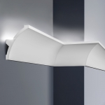 Cornice for indirect light is used to illuminate the ceiling. The back side of the cornice has a cavity with space for light sources. LED light sources are usually the best option as they are both easy to install and energy efficient. Indirect light is effective, decorative, and enhances the feeling of space. The scope of application is great; however, cornices for indirect light are usually placed a bit below the angle between ceiling and wall.
