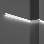 Cornice for indirect light is used to illuminate the ceiling. The back side of the cornice has a cavity with space for light sources. LED light sources are usually the best option as they are both easy to install and energy efficient. Indirect light is effective, decorative, and enhances the feeling of space. The scope of application is great; however, cornices for indirect light are usually placed a bit below the angle between ceiling and wall.