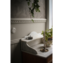 The wall mouldings are made of a shock- and water-resistant material with a smooth and paintable surface that accentuates the finest details and curves of the mouldings. The material is sandable and easy to process with standard hand tools. It can withstand moisture and most solvents, which makes cleaning an easy and safe process.