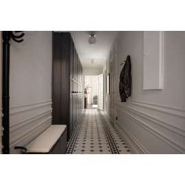 Questa modanatura per pareti ampia ha un profilo liscio ed è dunque ideale per diversi tipi di progetti architettonici. Grazie alla sue dimensioni generose, viene spesso utilizzata come cornice per boiserie, una caratteristica tipica delle case di inizio Novecento.
